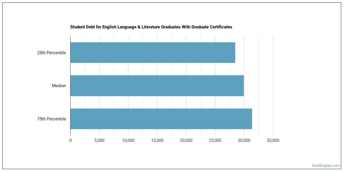 The median student debt for graduates holding a graduate certificate in english language & literature is $41,000. The length of time it takes you to graduate and what college you attend can affect this number quite a bit. The chart below shows the range of accumulated debt loads. On the high side of the range, $41,000 is the debt load, and the debt load on the low side is $41,000.
