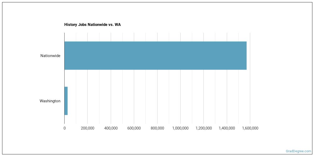 There are 26,900 people in the state and 1,569,710 people in the nation working in history jobs.