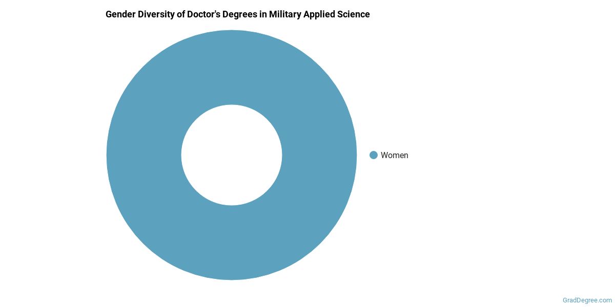 More men than women pursue doctor's degrees in military applied science. About 100.0% of graduates in this field are male.